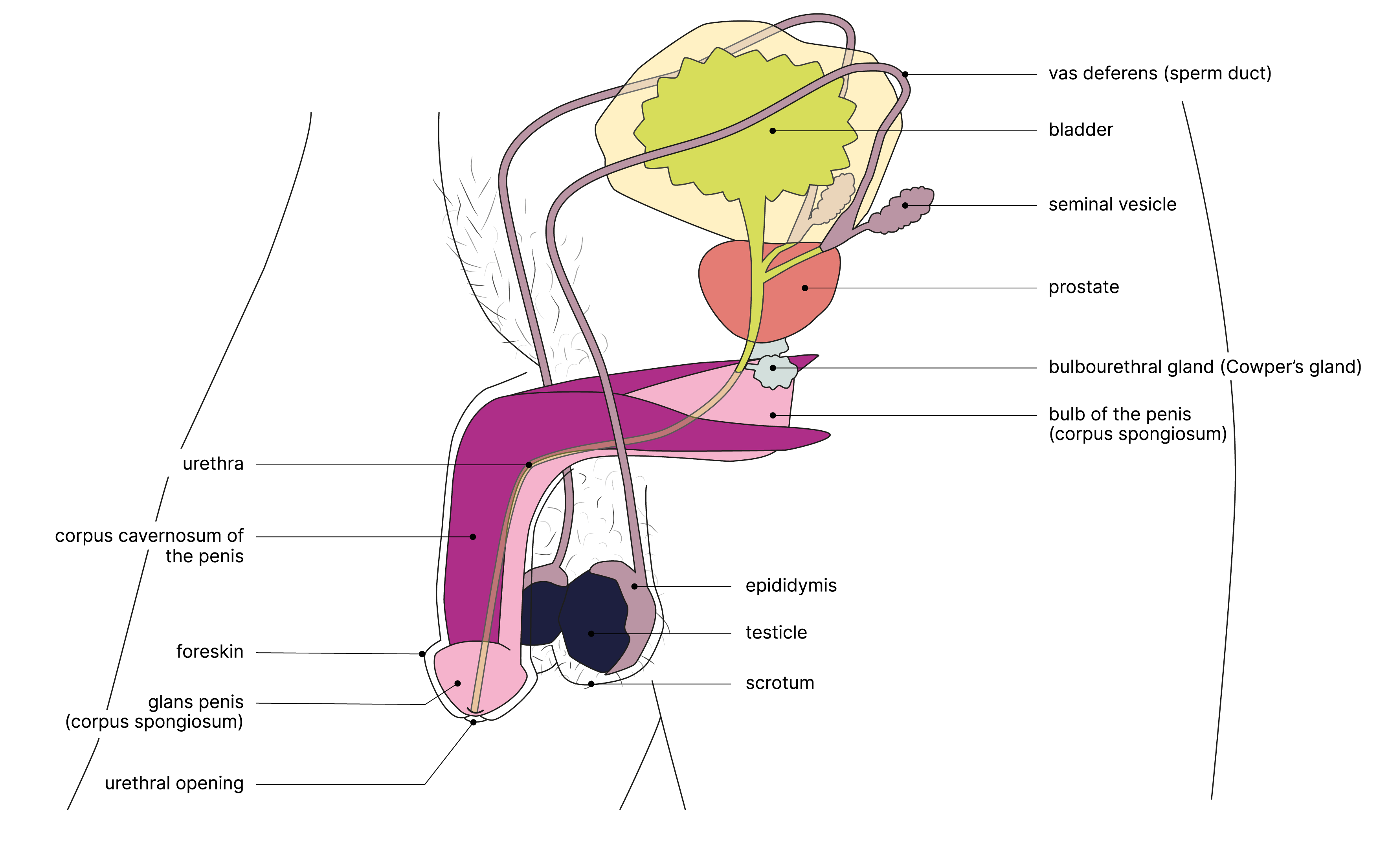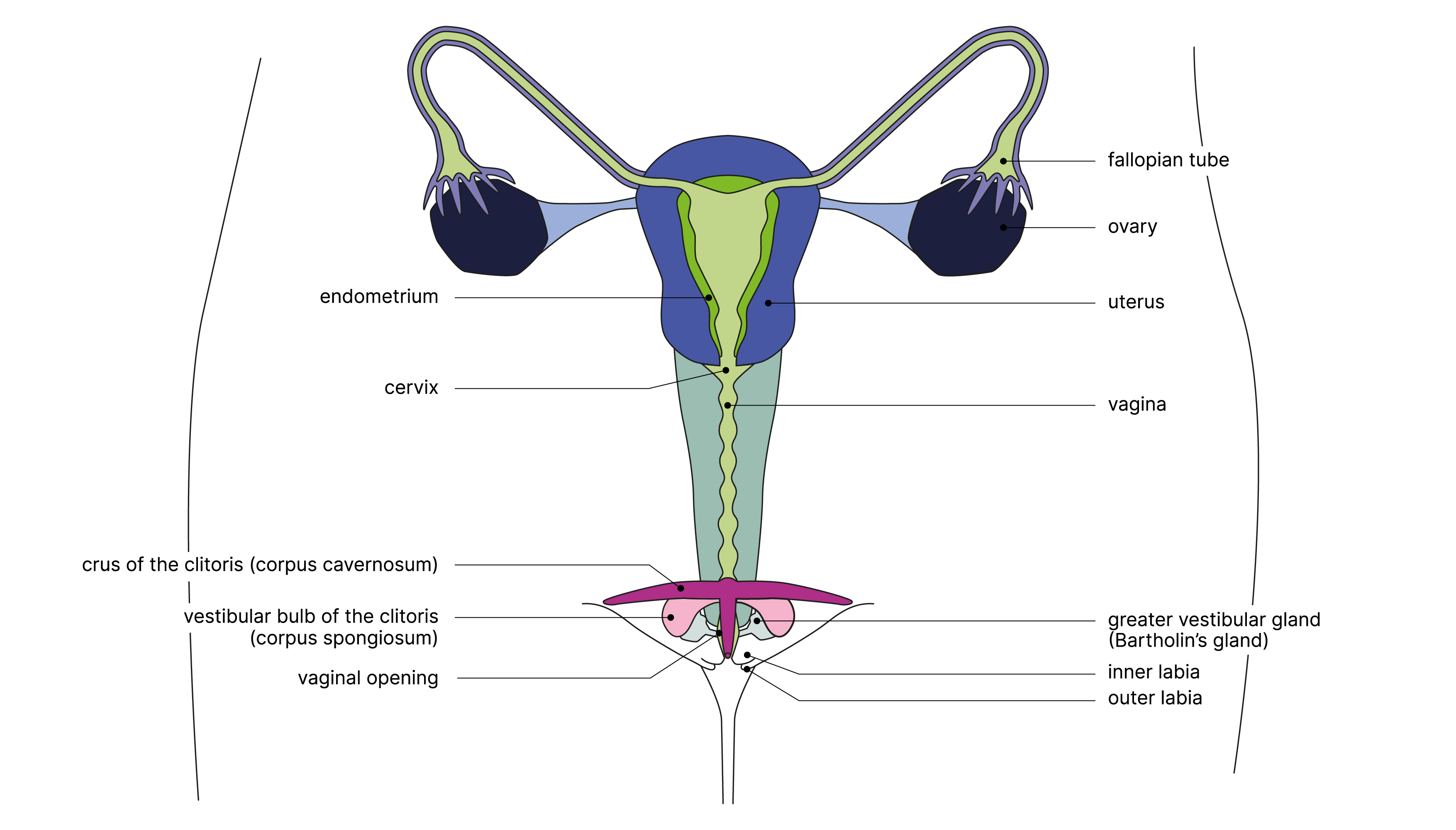 These illustrations are schematic diagrams of genitalia, and do not reflect their real-life diversity. The appearance of the genitals varies from person to person.