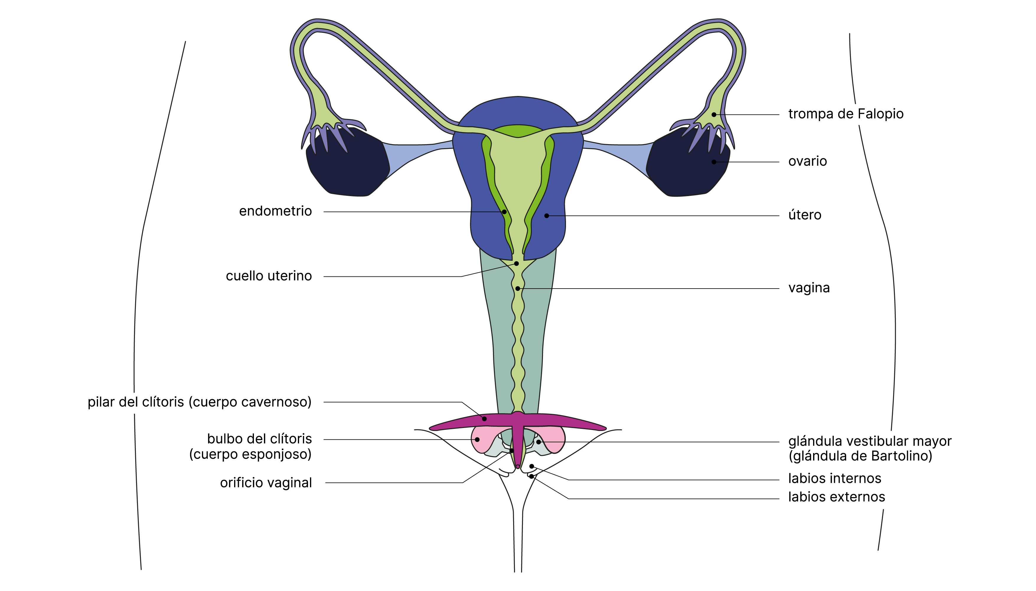 Estas ilustraciones son diagramas esquemáticos de los genitales y no reflejan su diversidad en la vida real. El aspecto de los genitales varía de una persona a otra.