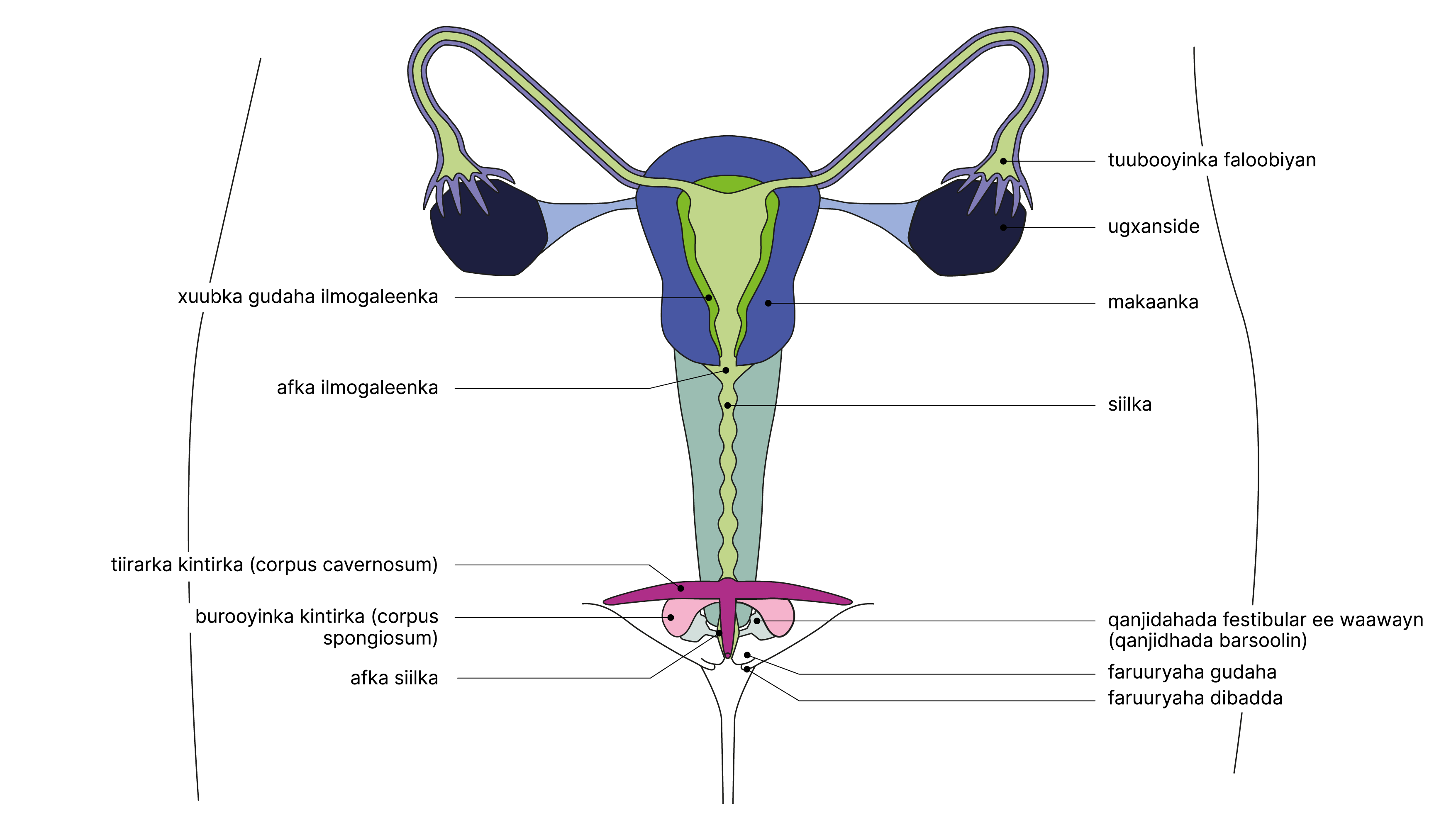 Makaanka, ugxansidayaasha, tuubooyinka faloobiyan, siilka iyo qanjirada qaar ayaa ku jira gudaha.